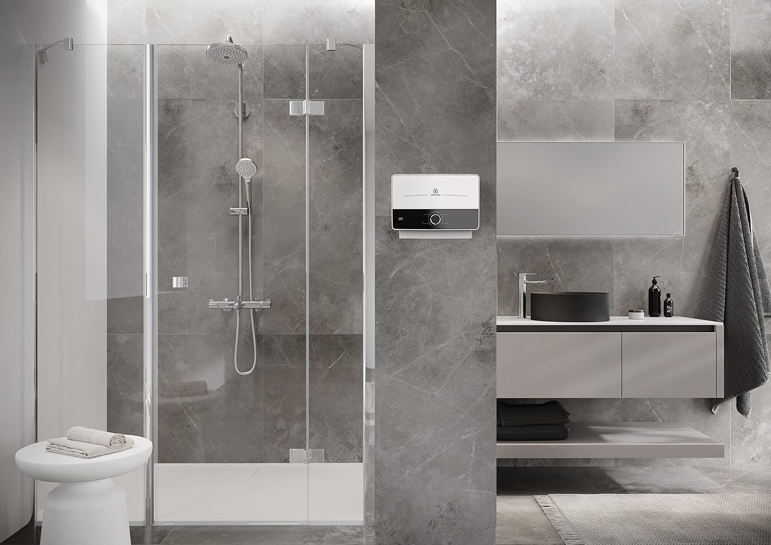 Multi-Point: Aures Multi can supply multiple outlets with hot water (not simultaneously) upon point of use. New Italian premium design