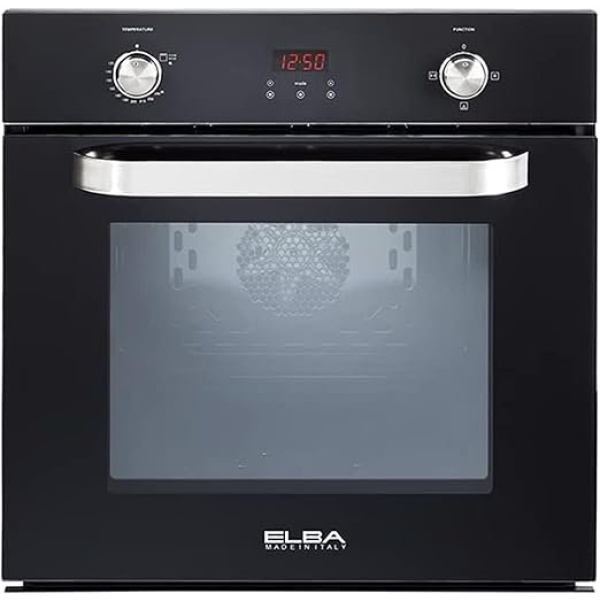 Elba Gas oven 60 cm, glass black,Multifunction,54 liters, stainless keys for setting heat and function, electronic touch timer,Inner fan, Cooling Fan. 512-7GTC