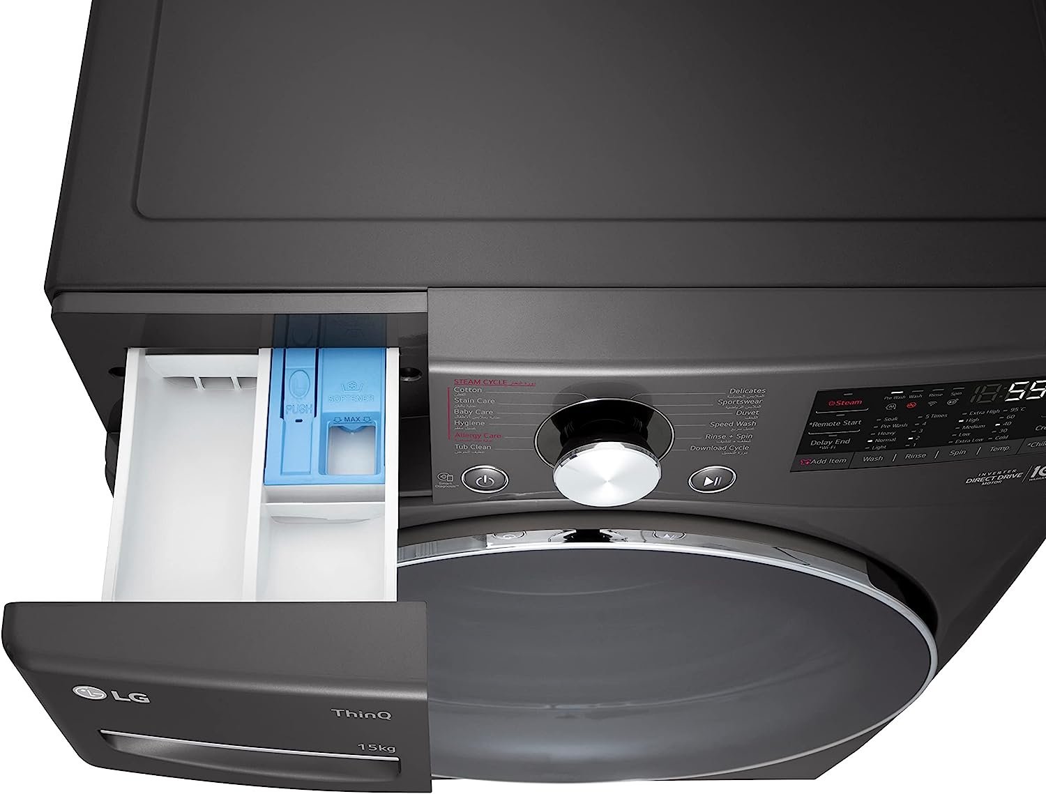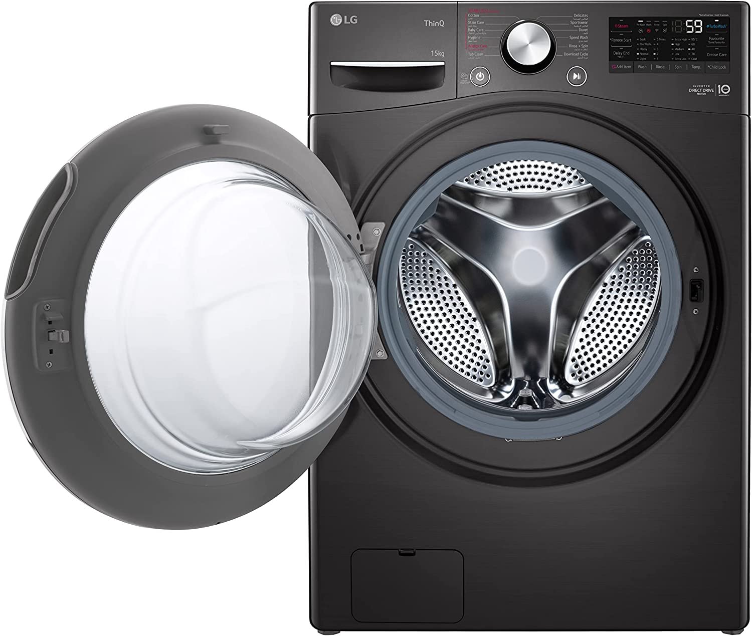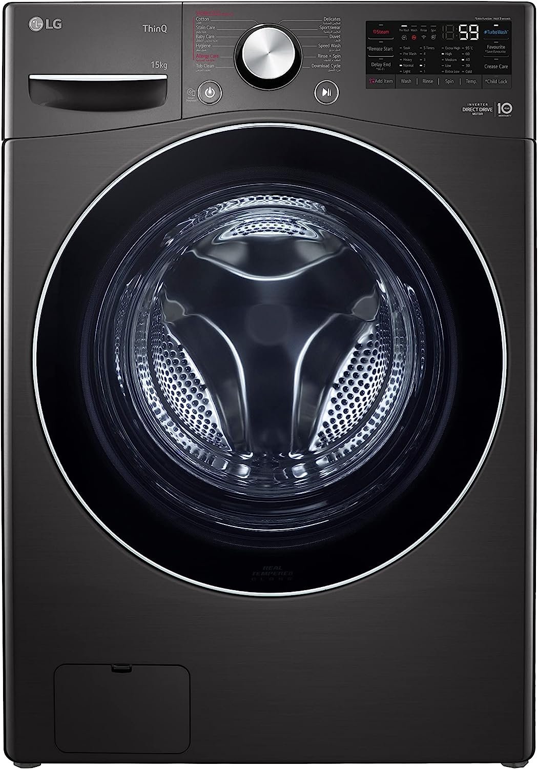 LG Washing Machine, 15 KG Tempered Glass Door Black – F0L9DYP2E