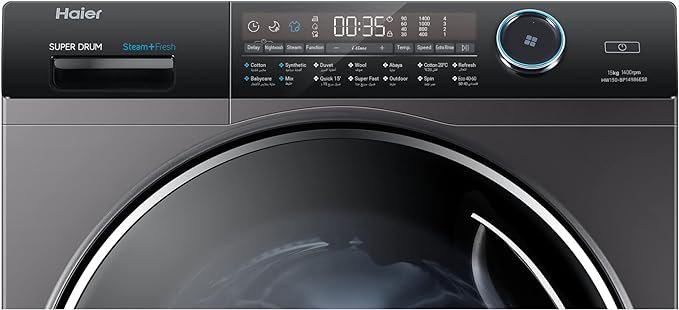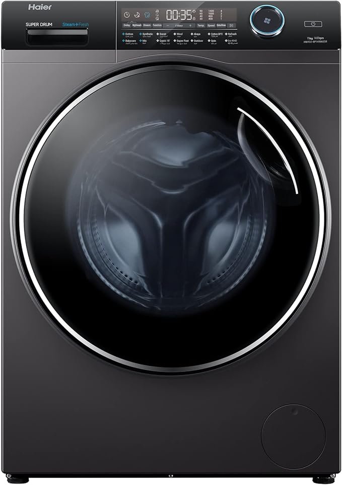 Haier 15 KG Front Loading Washing Machine, Steam, inverter Motor, 601 MM Super Drum, Dark Silver – HW150-BP14986ES8