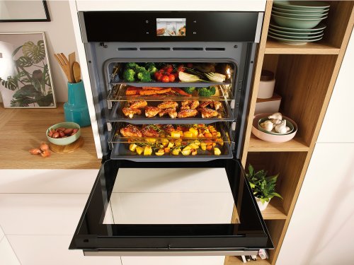 العمل المشترك بينMultiFlow 360˚ والشكل المحلي الصنع HomeMade يساعد في الوصول إلى أصعب هدف: إعداد خمس صواني من الأطباق في وقت واحد. والخبر السار هو: عدم اختلاط النكهات والروائح معاً. يضمن توزيع الهواء الذكي أن يٌخبز الطعام بالتساوي على كل مستوى. بما أن حجم الفرن أكبر، تكون المراقبة ممتازة أيضاً. تمكّن الموديلات المتفوقة من ترتيب صواني الخبز على خمسة مستويات مختلفة.