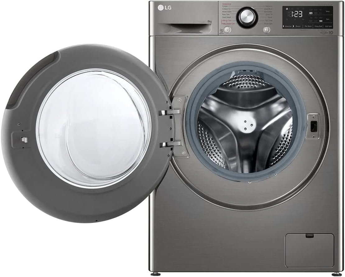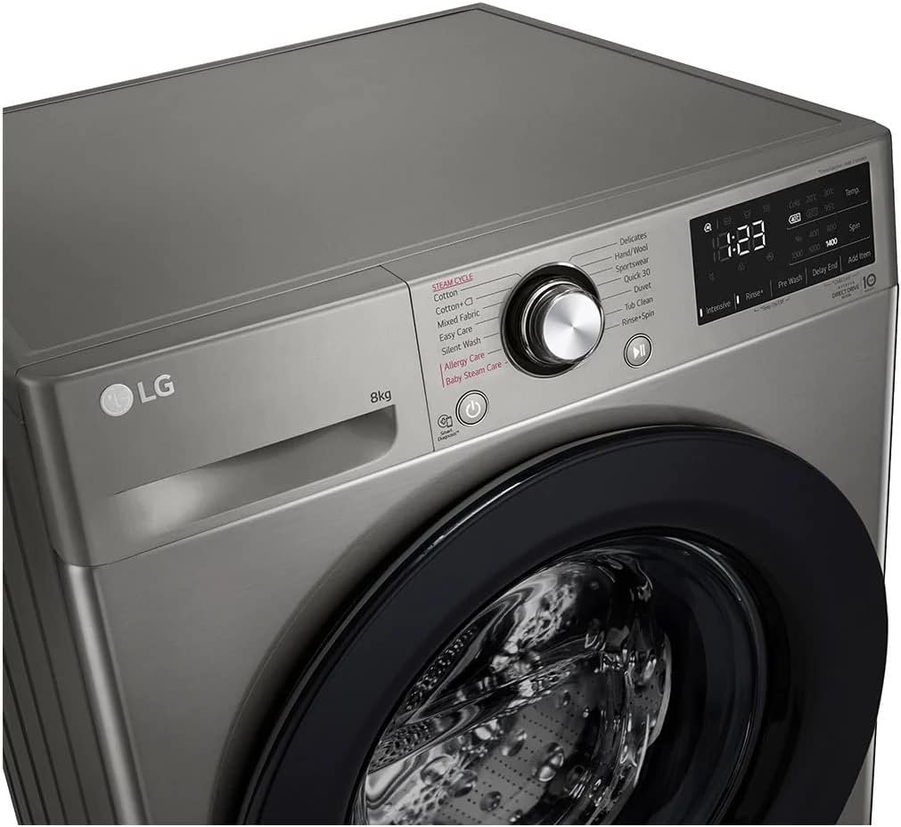 ال جي غسالة ملابس اوتوماتيك فيفاتشي تحميل امامي، 8 كجم، فضي – F4R3TYG6P