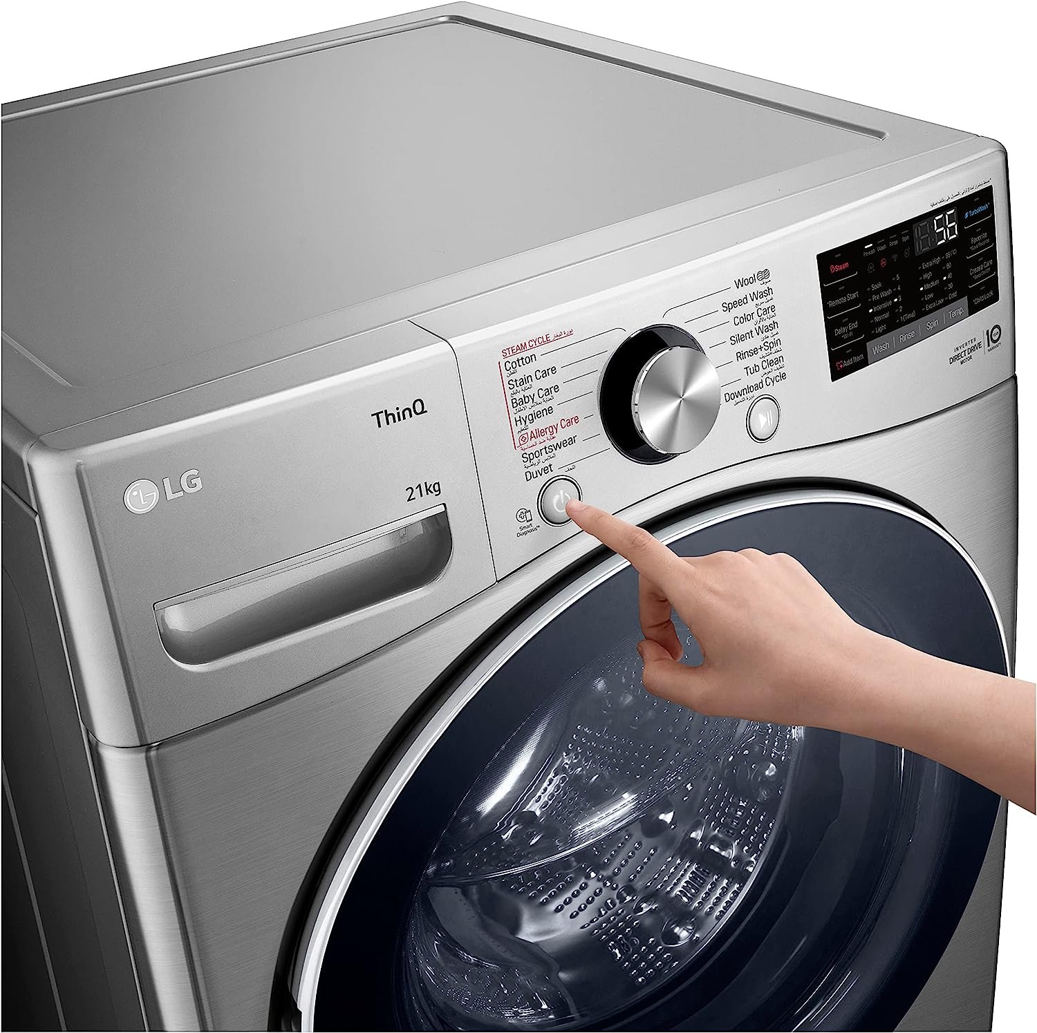 ال جي غسالة ملابس 21 كيلو 1100 لفة سلفر انفرتر F0P2CYV2T