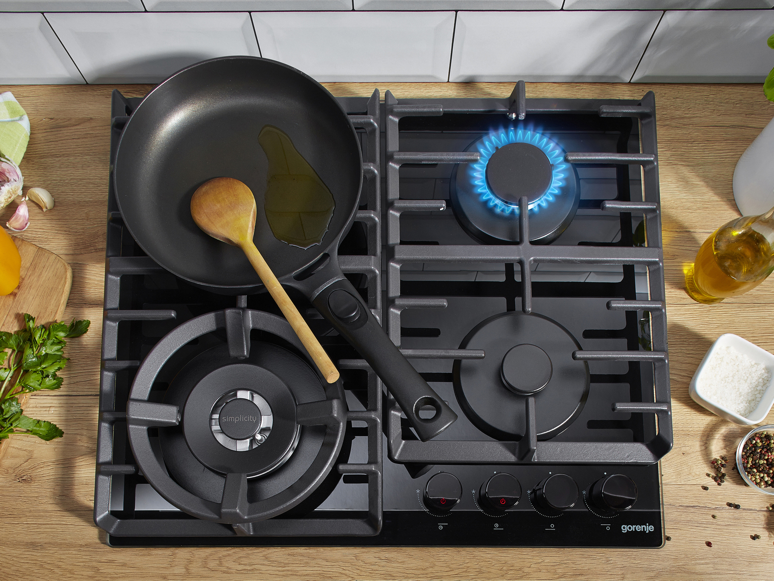 يوفر سطح الطهي الموسع (ما يصل إلى 20%) والمسافات الأطول بين الشعلات مساحة كبيرة لجميع أحجام الأوعية والأواني. التصميم الأنيق والمسطّح يسمح بسهولة تحريك واستخدام الأواني الكبيرة جداً دون أي إعاقة، مع استقرار مثالي لجميع مغامرات طهيك.