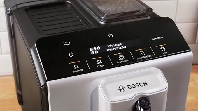 بوش ماكينة تحضير القهوة الاوتوماتيكية بالكامل السلسلة 2 – مضخة ضغط 15.0 بار – خزان مياه سعة 1.4 لتر – حاوية حبوب بسعة 250 غرام – فضي – TIE20301
