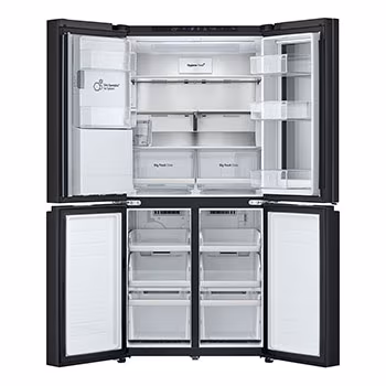 ثلاجة إل جي إنستافيو، ماكينة صنع الثلج بأربعة أبواب، بتقنية العاكس الرقمي، لون أسود مطفي (GC-X22FFQAB)