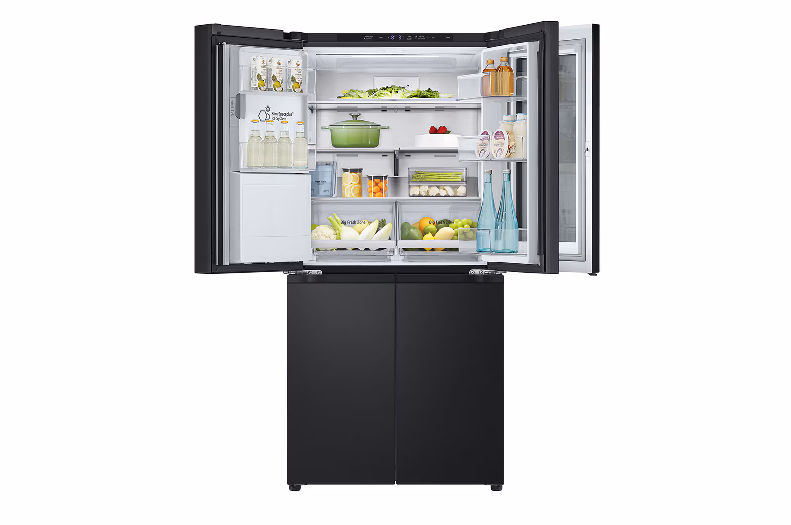 ثلاجة إل جي إنستافيو، ماكينة صنع الثلج بأربعة أبواب، بتقنية العاكس الرقمي، لون أسود مطفي GC-X22FFQAB