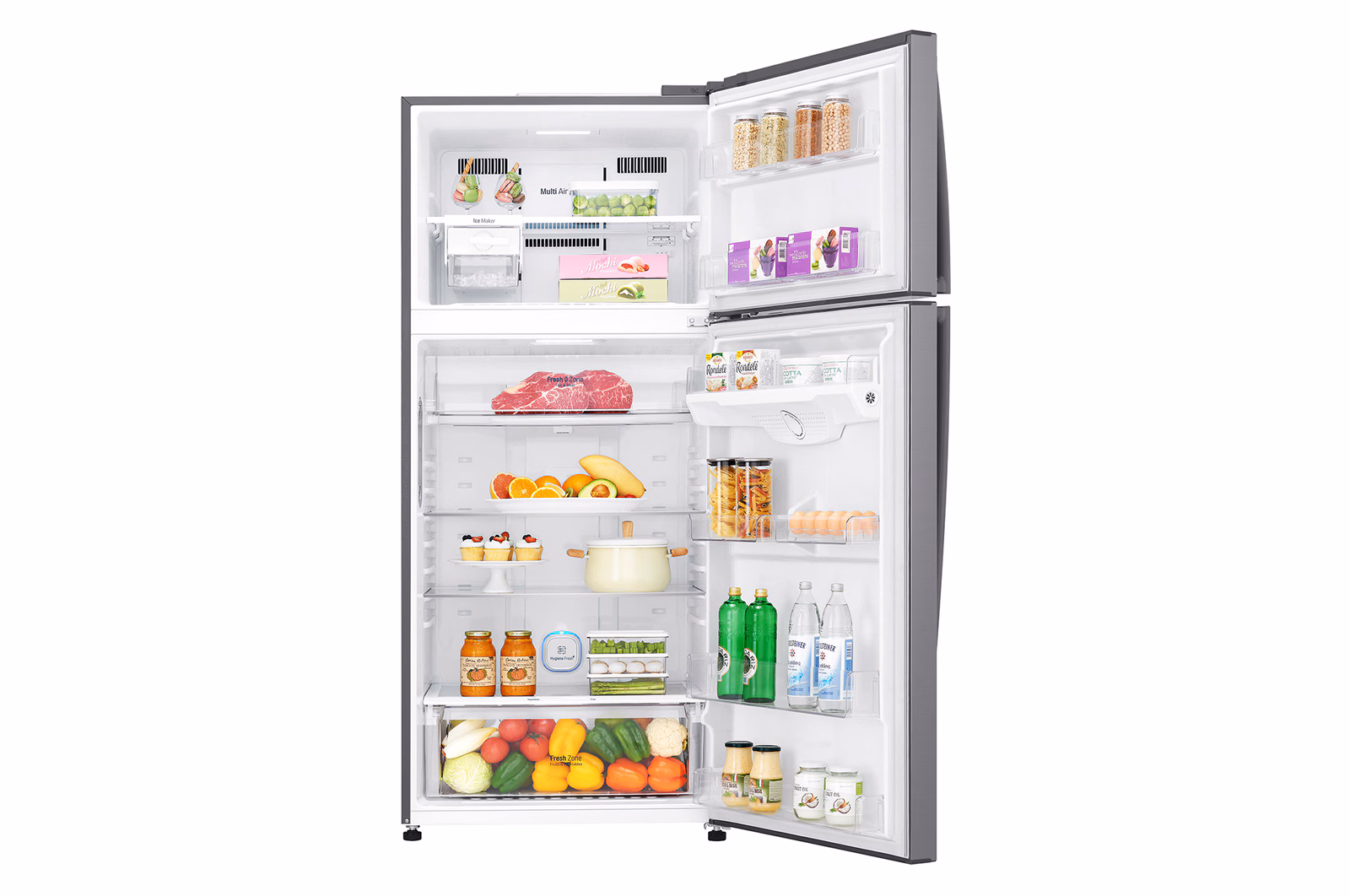 ثلاجة إل جي الرقمية العاكسة باللون الفضي البلاتيني GN-H722HFHL، بتصميم عصري وأداء ممتاز مع تقنية العاكس للحفاظ على نضارة الطعام لفترة أطول.