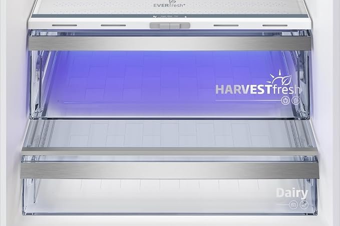 تقنية هارفست فريش: مستوحاة من الطبيعة، تُحاكي هذه التقنية المبتكرة للإضاءة ثلاثية الألوان دورة الشمس الطبيعية داخل الثلاجة، مما يحافظ على الفيتامينات في الفواكه والخضراوات لفترات أطول. من خلال الحفاظ على دورة الضوء والظلام، تُساعد هارفست فريش في الحفاظ على القيمة الغذائية لمنتجاتك، مما يتيح لك الاستمتاع بوجبات طازجة ومغذية أكثر ونمط حياة صحي.