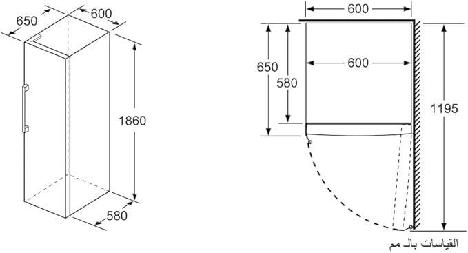 العرض : 650 mm العمق : 600 mm الارتفاع : 1860 mm