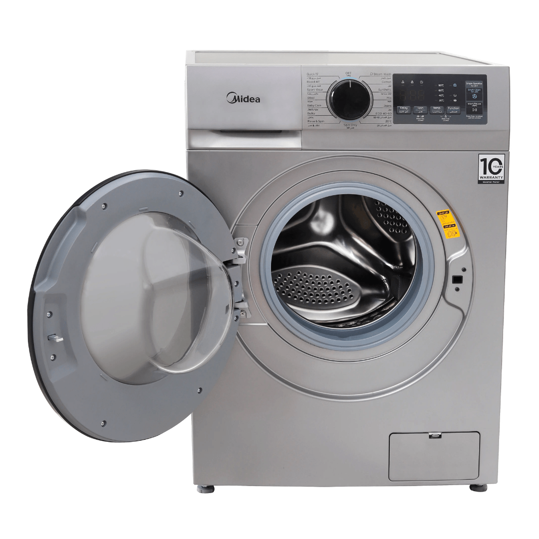 غسالة ملابس ميديا ديجيتال فول اوتوماتيك بتقنية الانفرتر، تحميل امامي، 8 كجم، فضي – MFN09W80B/S