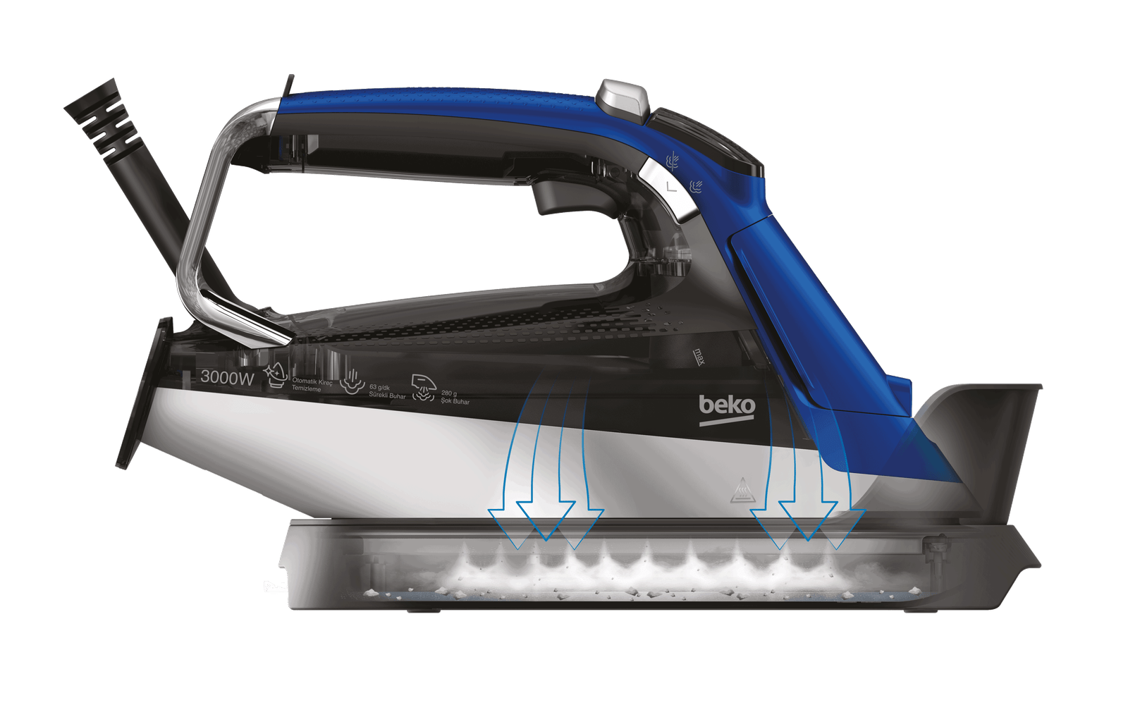 • – خاصية الكي بالصدمات البخارية (270جم/دقيقة).