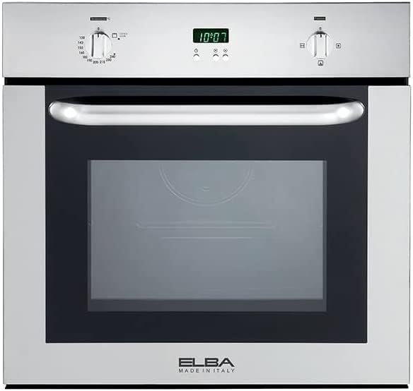 فرن غاز إلبا ٦٠ سم، لون ستانلس ستيل، ٥ وظائف، سعة ٥٤ لترًا، مفاتيح ستانلس ستيل لضبط الحرارة والوظائف، مؤقت إلكتروني، مروحة داخلية، مروحة تبريد، أمان كامل. -512-731X