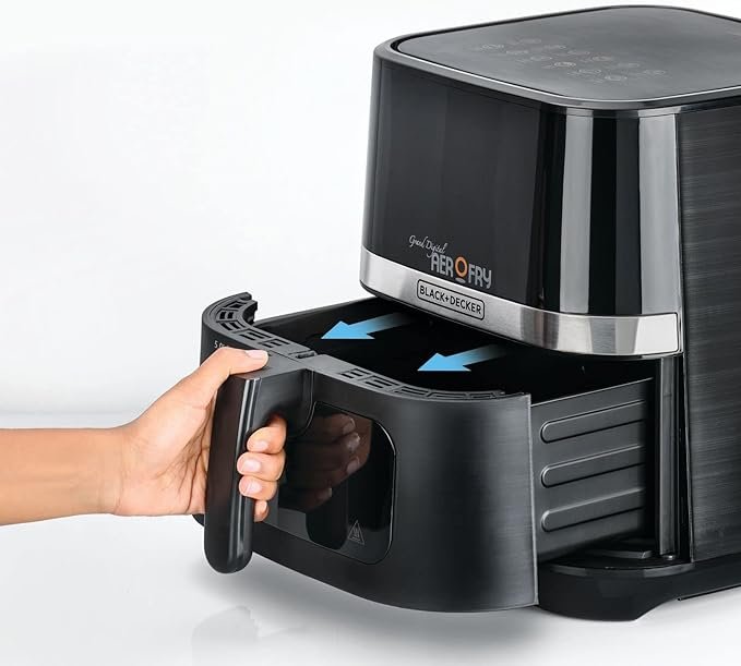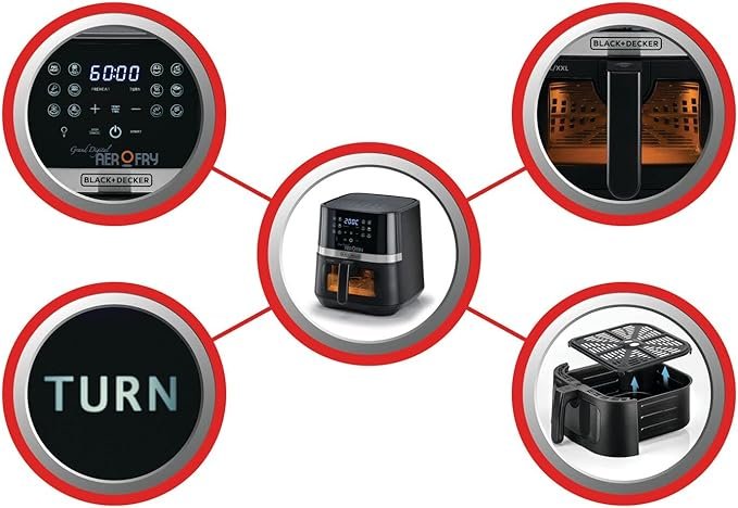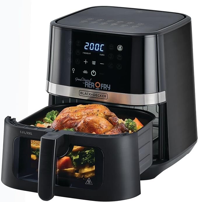 قلايه هوائية بلاك اند ديكر كبيرة الحجم 12 في 1 بشاشة تعمل باللمس بسعة 5.8 لتر و2 كيلوجرام وقدرة 1800 واط AF5800-B5 أسود
