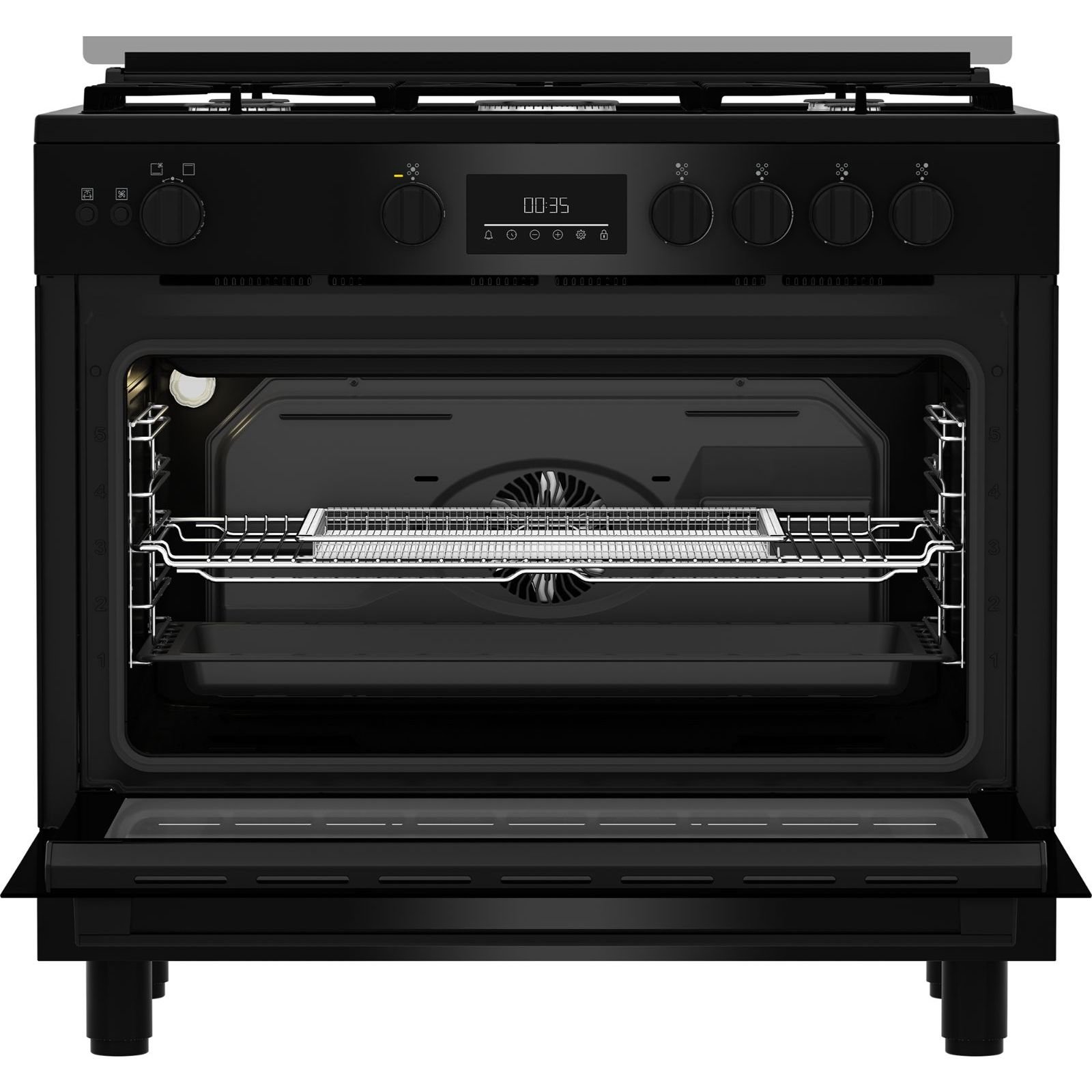 بوتاجاز غاز بيكو ٥ شعلات بشاشة رقمية – ٩٠ سم، أسود، BGGR 11225 GB