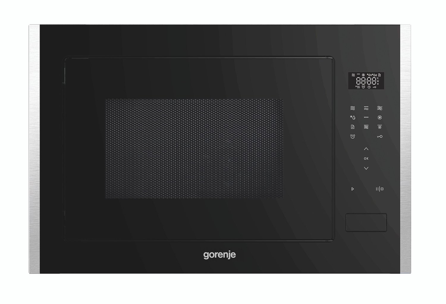 فرن ميكروويف متعدد الوظائف، 60 سم، سعة 25 لترًا، شاشة LED لجميع الإعدادات، قفل شاشة، تحكم باللمس، ميكروويف + فرن + شواية، مؤقت وساعة، إضاءة داخلية.