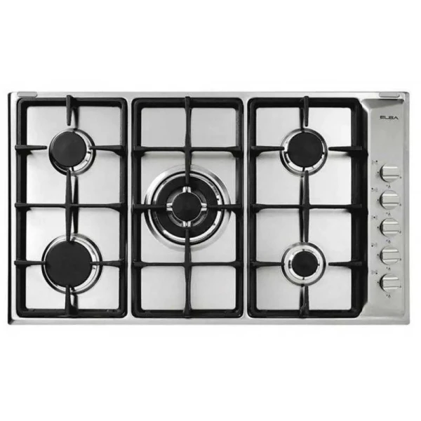 مسطح غاز إلبا 90 سم، 5 شعلات، حديد زهر، ستانلس ستيل، E90-541XC