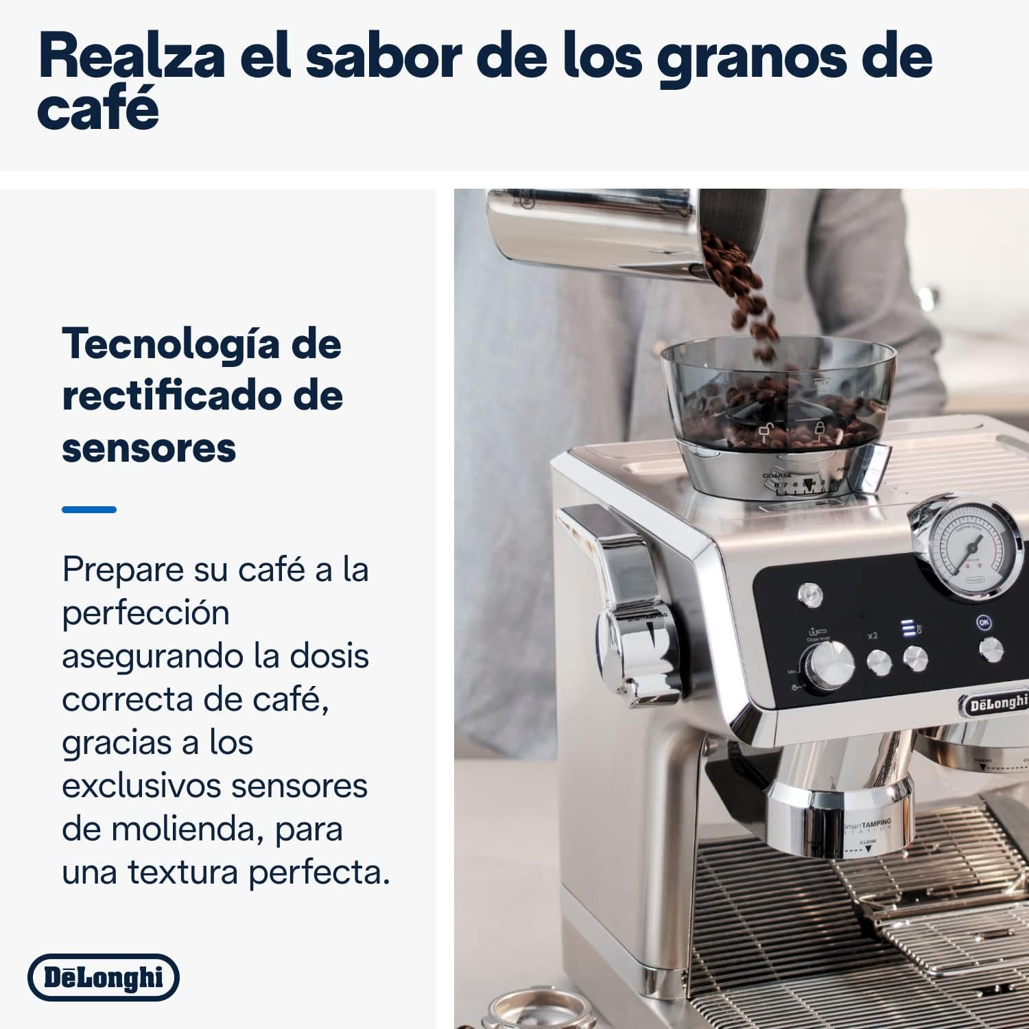 تقنية الطحن بالمستشعرات: المطحنة المتطورة مزودة بمستشعرين لتقديم جرعة قهوة متجانسة. مع إعدادات طحن للتحكم في أنواع مختلفة من حبوب البن.