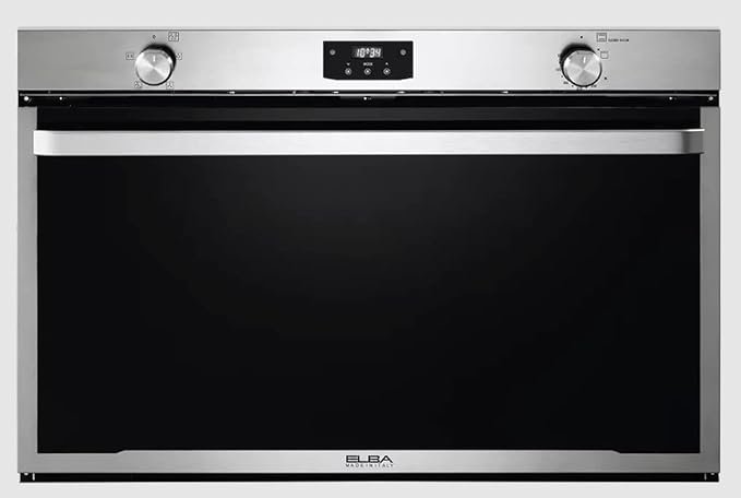 فرن غاز إلبا ٩٠ سم، لون ستانلس ستيل، متعدد الوظائف، ١٤١ لترًا، مفاتيح ستانلس ستيل لضبط الحرارة والوظائف، مؤقت إلكتروني، مروحة داخلية، مروحة تبريد – Elio G90