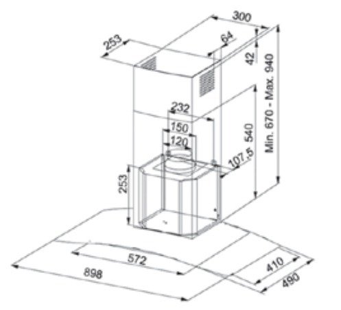 فرانكي – شفاط مطبخ زجاجي منحني 90 سم، 650 متر مكعب/ساعة، ستانلس ستيل – FGC 925 BK/XS LED