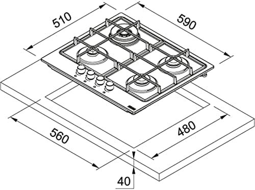 مسطح غاز فرانكي مدمج 4 شعلات من الفولاذ المقاوم للصدأ باللون الفضي – FHSM 604 3G DC XS C