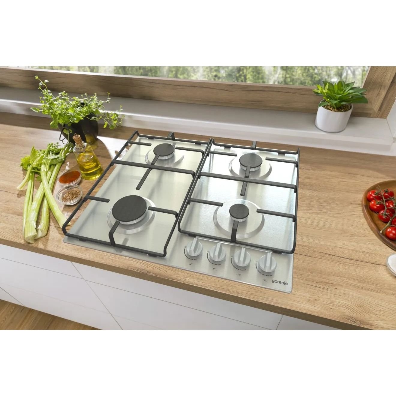 مسطح غاز جورنيا بيلت ان ، 60 سم، 4 شعلات، مقابض أمامية، إشعال ذاتي، شبكة من الحديد الزهر، ستانلس ستيل - G641EX