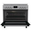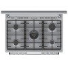 بوتجاز غاز قائم بذاته ستانليس ستيل مقاس 90 سم، 5 شعلات غاز، سعة 110 لتر، فرن متعدد الوظائف مع مروحتين و جوانب و ضهر كاتليتك، دعامة مقلاة من الحديد الزهر، قلي هوائي، إغلاق هادئ وسلس لباب الفرن