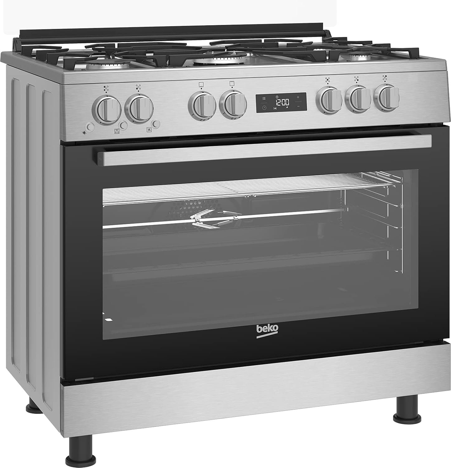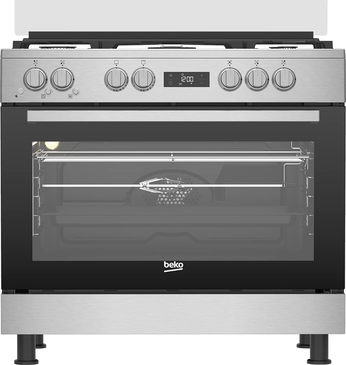 بيكو بوتجاز بيكو 5 شعلة حماية كاملة من الستانلس ستيل مع 2 مروحة طبخ، مقاس 90 سم – موديل GGR 15325 FX NS