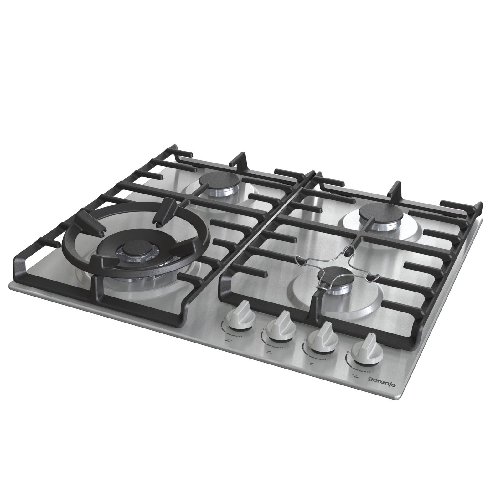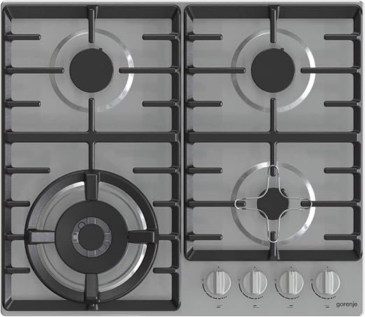 مسطح غاز جرونيا بيلت ان 60 سم، شعلات غاز محمية، شبكات من الحديد الزهر، إشعال بيد واحدة، ستانلس ستيل، GW641X