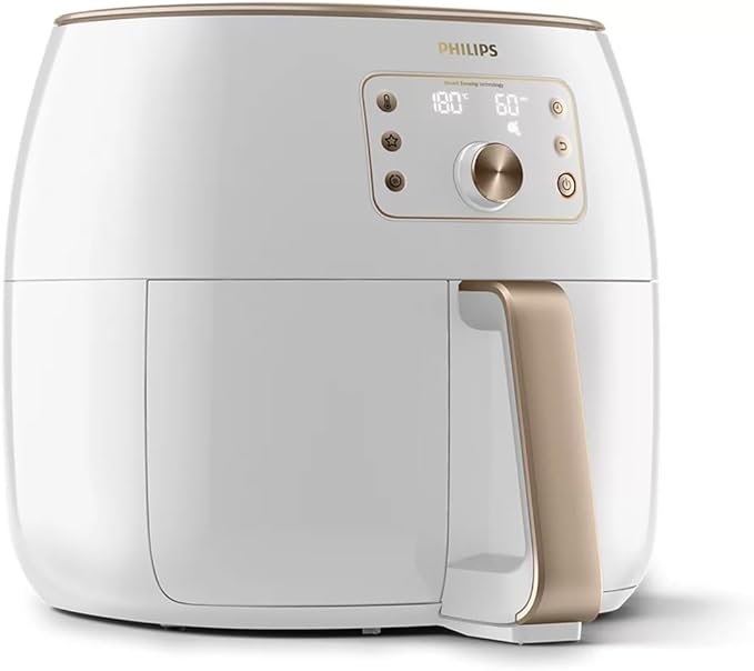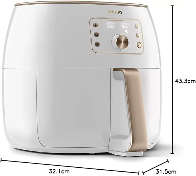 قلايه فيليبس الهوائية الفاخرة XXL – قلايه هوائية بدون زيت، تقنية الاستشعار الذكي، ٢٢٢٥ واط، تقنية إزالة الدهون، تقنية الهواء السريع، لون أبيض، HD9870/20