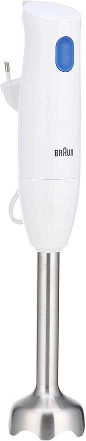 خلاط يدوي براون MQ10.001M ملتي كويك 1 – عصا هريس خفيفة للغاية مع قاعدة خلط من الفولاذ المقاوم للصدأ ونظام إيزي تويست، مزود بكوب خلط وقياس سعة 600 مل، بقوة 450 واط، لون أبيض