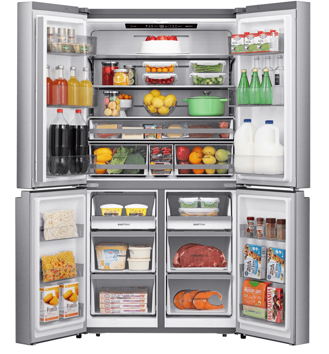 ثلاجة جرونيا بأربعة أبواب مع فريزر، ٩٠ سم، سعة ٦٦٤ لترًا، محرك عاكس – NRM918FUX