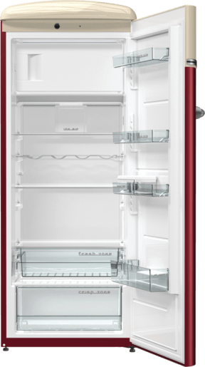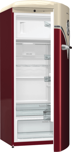 ثلاجة جرونيا مع فريزر، فولكس واجن، تحكم ميكانيكي، نظام IonAir مع DynamiCooling، مروحة لتوزيع الهواء البارد، تصنيف الطاقة A+++-أحمر – OBRB153R