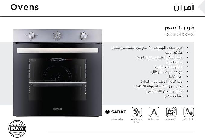 فرن غازكينوود بيلت ان ، مقاس 60 سم OVG60.000SS