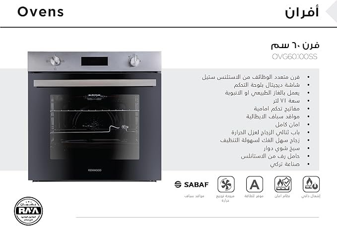 فرن غاز كينوود بيلت ان ديجيتال مقاس 60 سم OVG60.100SS