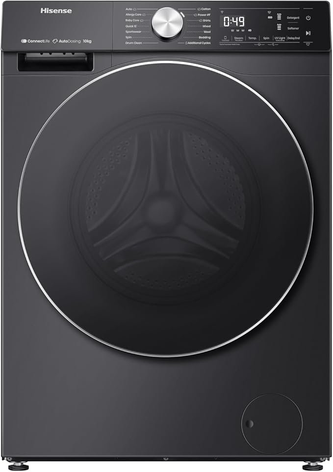غسالة هايسنس، تحميل أمامي، ١٢ كجم، ١٤٠٠ دورة في الدقيقة، لون أسود، واي فاي، انفرتر – WF5S1245BB، بضمان رايه