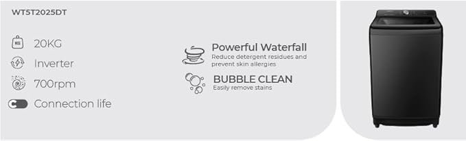 غسالة هايسنس الرقمية الأوتوماتيكية، تحميل علوي، انفرتر، سعة 20 كجم، لون رمادي تيتانيوم – WT5T2025DT- بضمان رايه